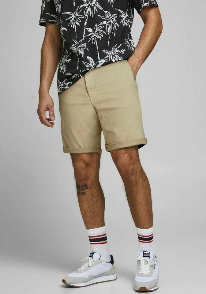 Bei allen deinen Freizeitaktivitäten machst du mit den Chinoshorts »FRED CHINO SHORTS« von Jack & Jones eine besonders gute Figur: Die Kombination aus Hose, einem lässigen T-Shirt und bunten Sneakern stellt ein besonders cooles Outfit zusammen.