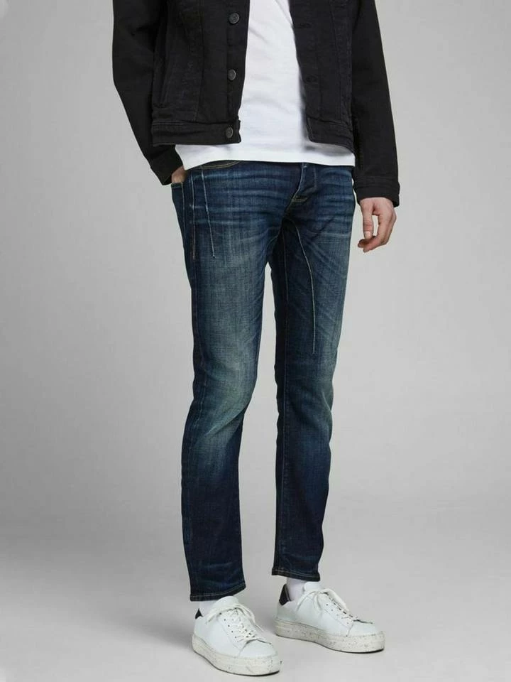 – Slim Fit-Jeans mit Tapered Legs und Low Rise – Mit Details des klassischen Five-Pocket-Styles – Stretchdenim sorgt für tollen Tragekomfort – Das Model ist 184 cm groß und trägt Größe 31/32 – JACK & JONES JEANS INTELLIGENCE Slim Fit Glenn Dir gefällt der Look von Skinny-Jeans, aber du wünschst dir etwas mehr Platz an den Oberschenkeln? Das klingt so, als wären die Glenn-Slim-Jeans die perfekte Passform für dich. Und dazu sind sie auch noch superbequem – der Jeansstoff hat genau den Stretchanteil, den du brauchst. Mit unserem Größenfinder findest du schnell die richtige Größe.