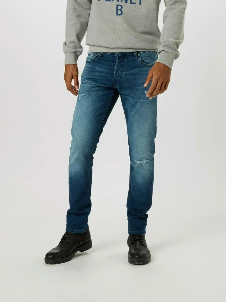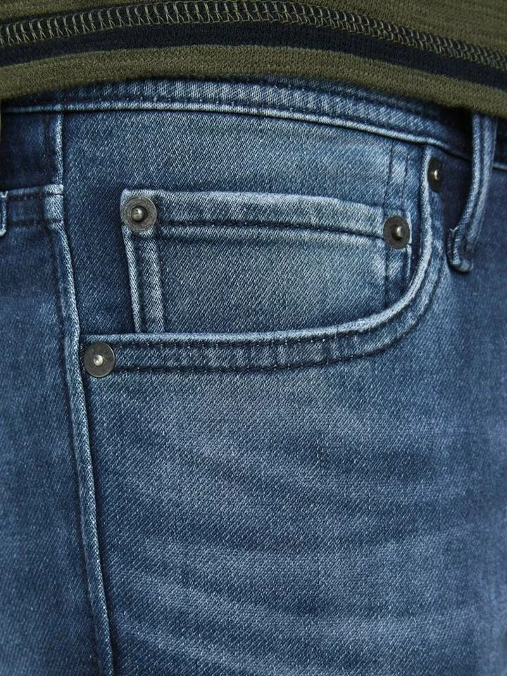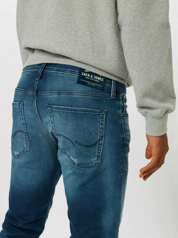 – Slim-Fit-Jeans mit Tapered Legs und Low Rise – Mit Details des klassischen Five-Pocket-Styles – Indigoknit mit Sweathosen-Feeling – Mit Stretchanteil für mehr Tragekomfort – Das Model ist 187 cm groß und trägt Größe 31/32 – JACK & JONES JEANS INTELLIGENCE Slim Fit Glenn Dir gefällt der Look von Skinny-Jeans, aber du wünschst dir etwas mehr Platz an den Oberschenkeln? Das klingt so, als wären die Glenn-Slim-Jeans die perfekte Passform für dich. Und dazu sind sie auch noch superbequem – der Jeansstoff hat genau den Stretchanteil, den du brauchst. Mit unserem Größenfinder findest du schnell die richtige Größe. Original-Style Original bedeutet klassische 5-Taschendetails; zeitlos und unverändert gut. Das macht sie zu einer Jeans, auf die du dich immer verlassen kannst. Indigoknit Indigoknit kombiniert den Komfort von gestrickter Sweatwear mit dem authentischen Denim-Look. Indigoknit sorgt für einen markanten Look und fühlt sich genauso bequem wie eine Sweathose an.