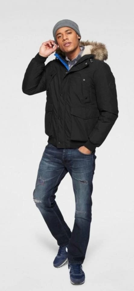 Jacke & Jones Winterjacke mit Kunstfell Farbe: Schwarz / Blau Material: 100 % Polyester
