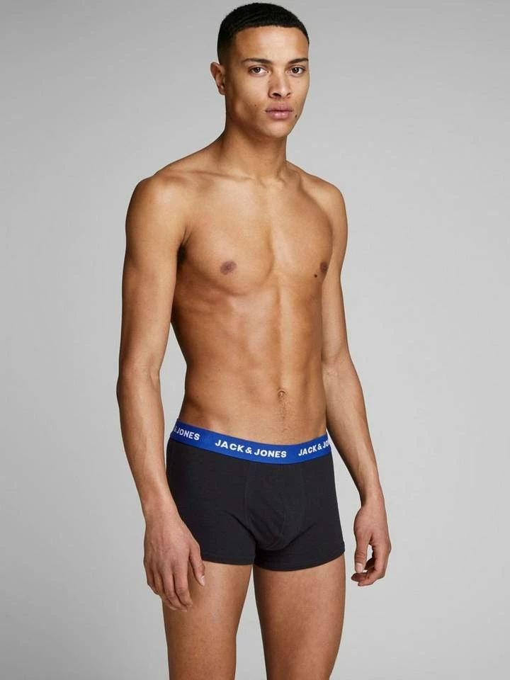 Sehr schöne und sportliche Boxershorts / Trunks im Fünferpack der Marke JACK & JONES. Durch den elastischen Bund und die hochwertige Baumwollmischung ist diese Unterhose sehr bequem zu tragen und ein Must-Have für dein tägliches Wohlbefinden. Der farblich abgesetzte Bund mit Logo-Prägung rundet das Bild ideal ab. Eng anliegend aber trotzdem nicht einengend! JACK & JONES ist ein stolzes Mitglied der Better Cotton Initiative. Indem Sie Baumwollprodukte von JACK & JONES kaufen, unterstützen Sie einen nachhaltigeren Baumwollanbau.